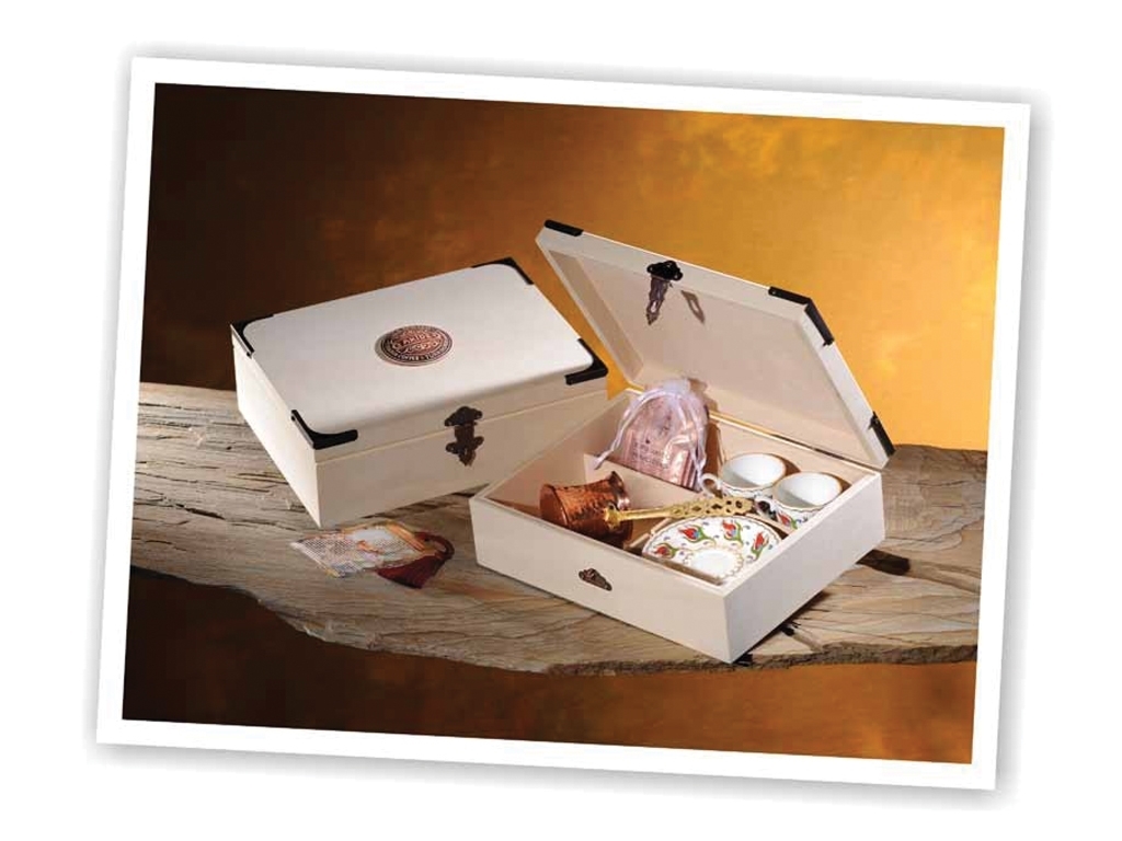 Packaging Set Packing Size 280 x 220 x 90 mm Ala natural wood coffee cup Tumbled on the cover Embossed Relief 'tulips coffee cup (2) copper coffee pot - Turkish coffee